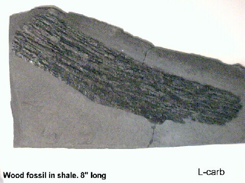 This is carbonized organic matter (wood) in gray shale.
